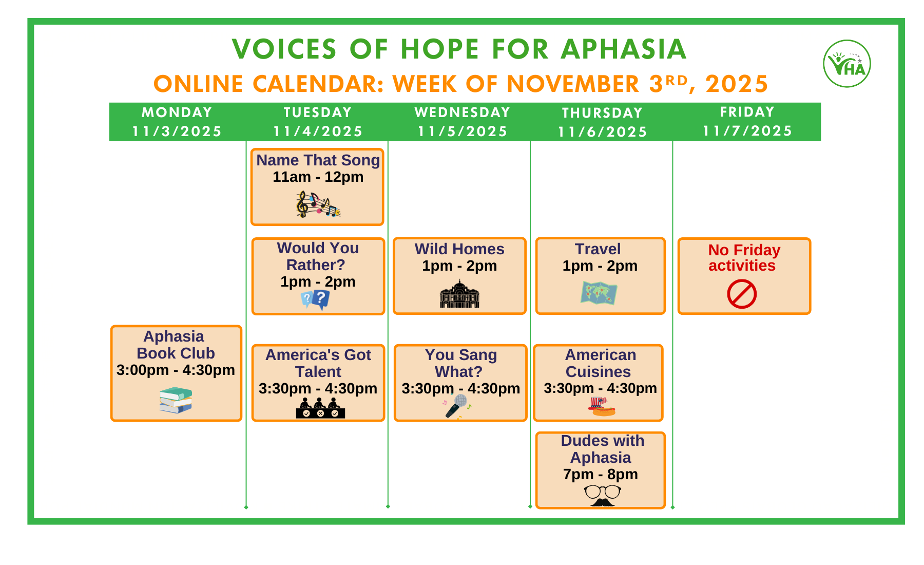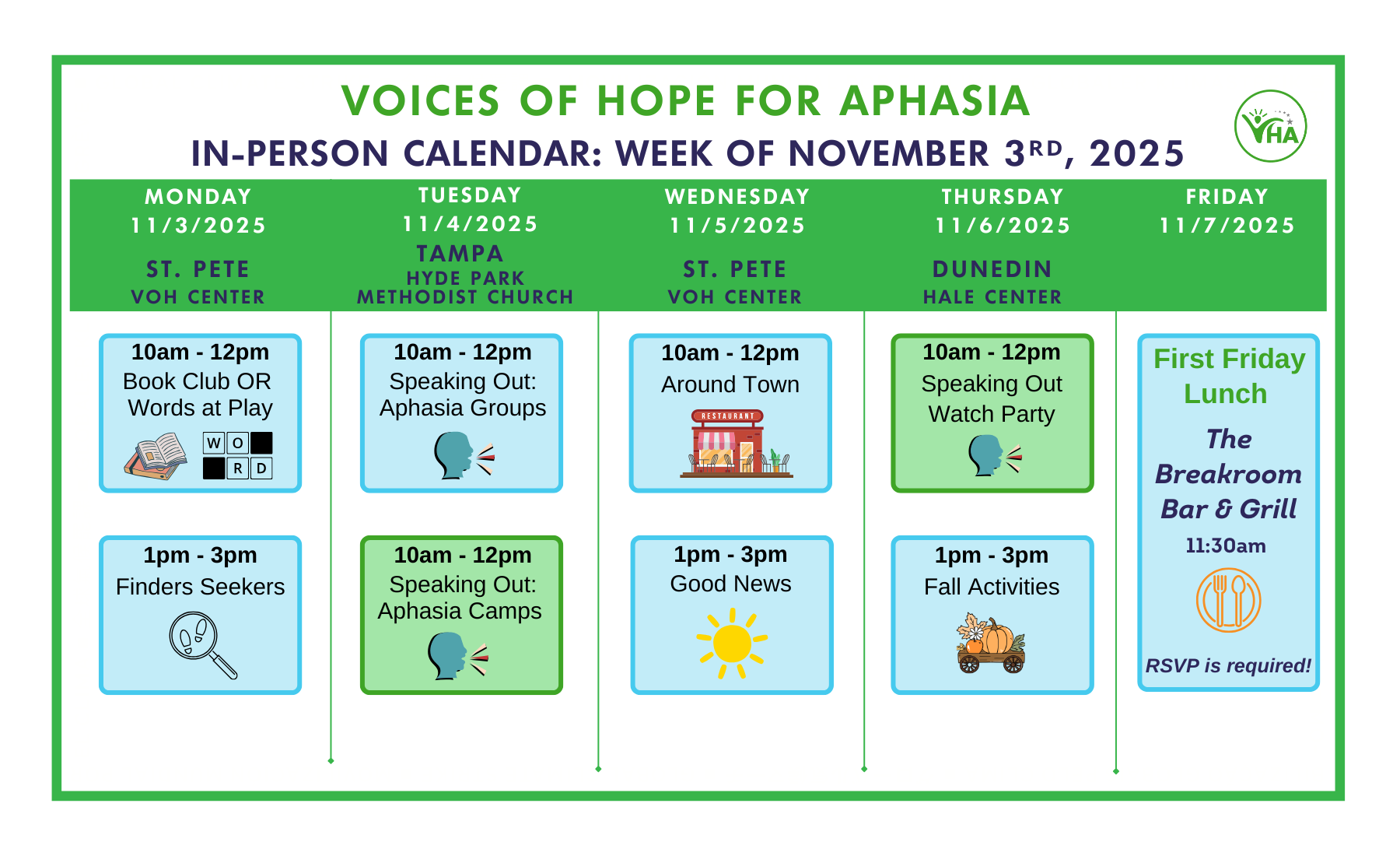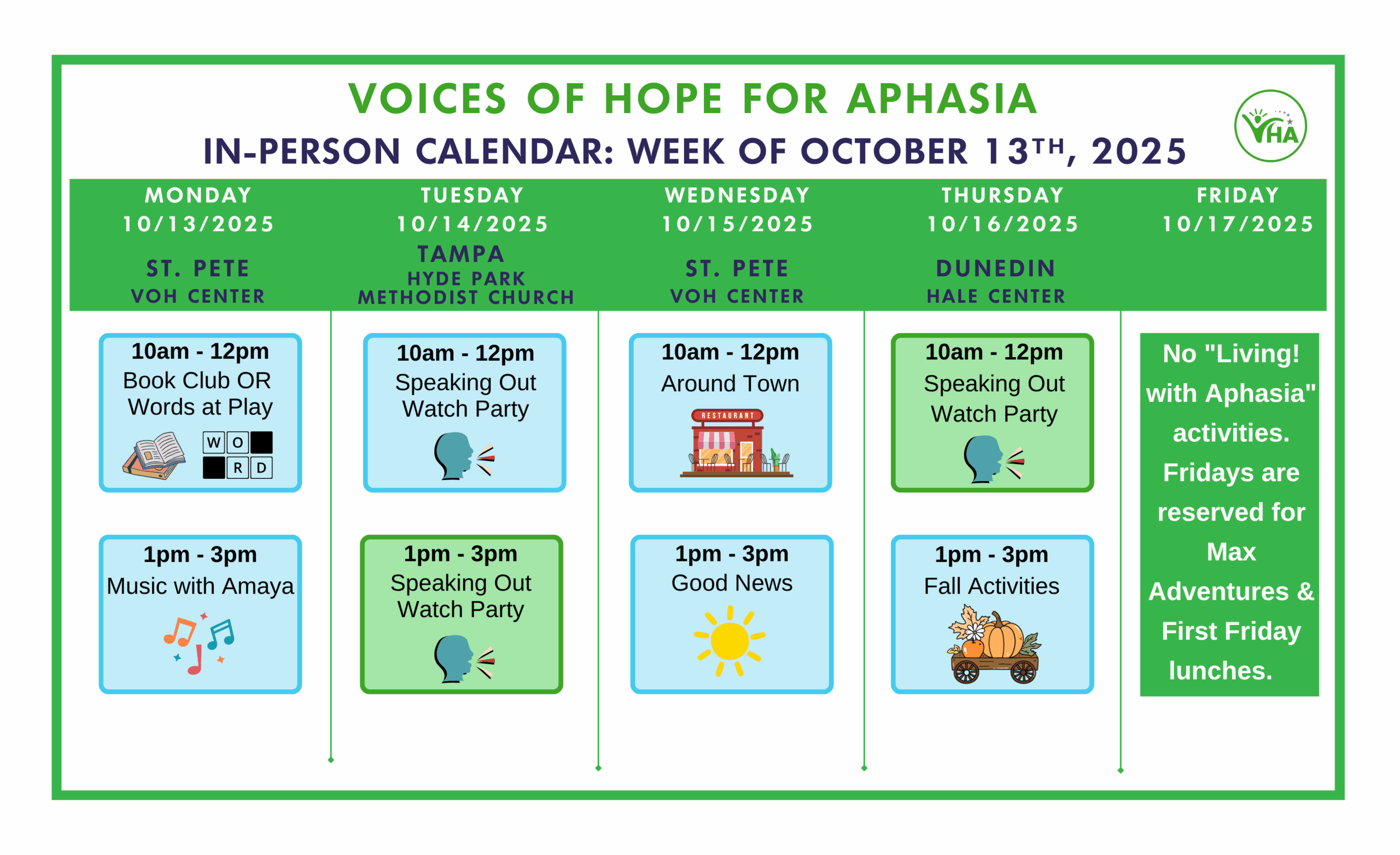 Voices of Hope for Aphasia offers in-person and online group activities.